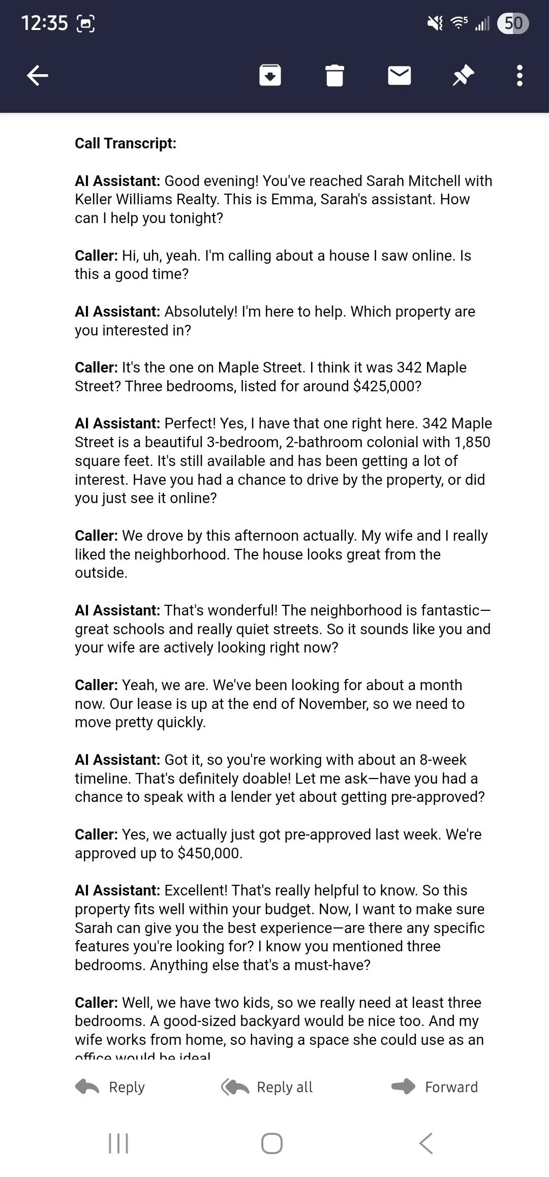 "I was at dinner when a seller called about listing their home. My AI qualified them,